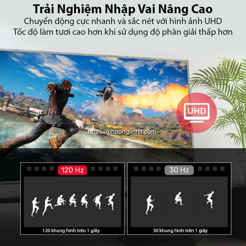 Tốc độ làm mới ở mức 120Hz khi ở chế độ 4K, hình ảnh UHD chuyển động cực nhanh trở nên siêu nét, tốc độ làm mới cao hơn khi sử dụng độ phân giải thấp hơn.