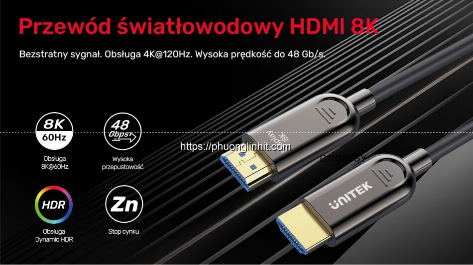 Thông số kỹ thuật: Cáp HDMI 2.1 sợi quang Unitek