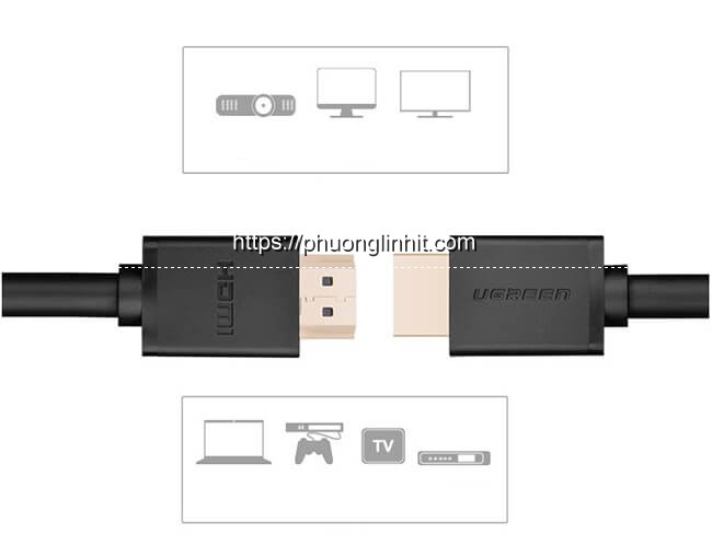 - Cáp HDMI Ugreen – UG-10112 dài 20M có IC khuếch đại tín hiệu, yêu cầu cắm đúng chiều đầu phát và đầu nhận .