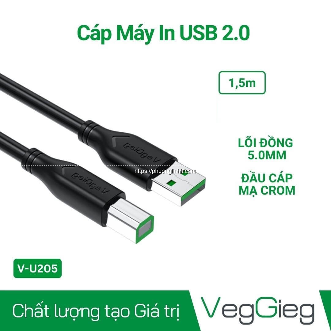 Cáp máy in usb 2.0 VegGieg – V-U205 dài 1.5M chính hãng