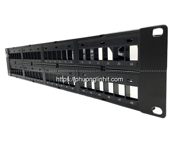 Patch Panel 48 port được thiết kế với 6 cổng trên 1 modules. Mỗi module có khả năng chấp nhận loại nhãn 9mm, và mỗi cổng trên một module có khả năng dán biểu tượng để xác định chức năng của nó.