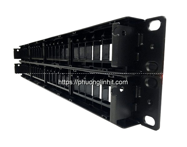 Ở hai đầu của thanh Patch Panel được gắn sẵn tai bắt rack, sử dụng khi lắp vào trong tủ rack. Thiết bị này được thiết kế với 48 khe cắm nhân mạng và được đánh số rõ nét để tiện cho việc lắp đặt cũng như quản lý.