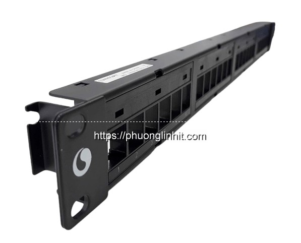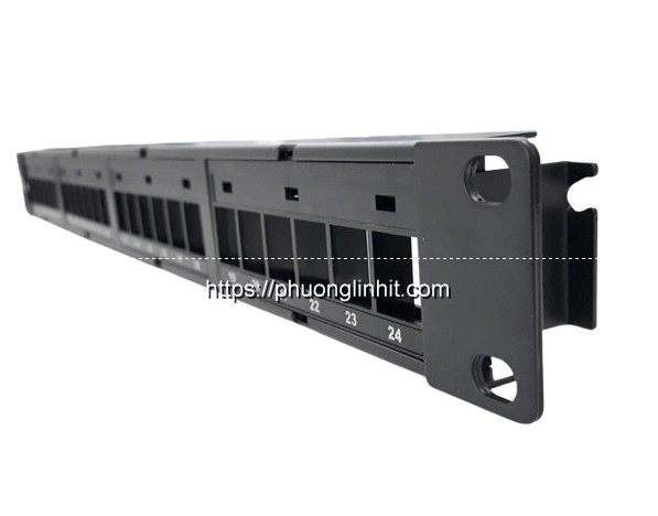 Ở hai đầu của thanh Patch Panel được gắn sẵn tai bắt rack, sử dụng khi lắp vào trong tủ rack. Thiết bị này được thiết kế với 24 khe cắm nhân mạng và được đánh số rõ nét để tiện cho việc lắp đặt cũng như quản lý.